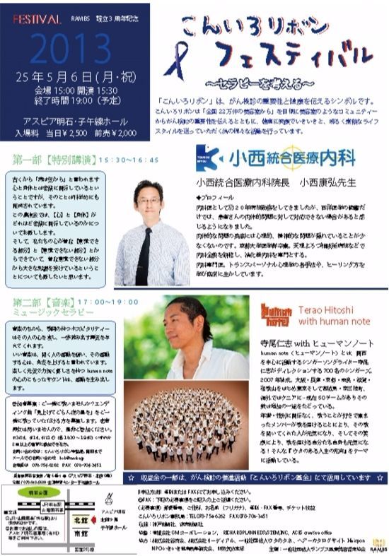 第一回目の「こんいろリボンフェスティバル」では、統合医療の医者であります小西康弘先生をお招きしまして、ご講演して頂きました。